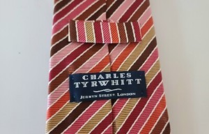 Charles Tyrwhitt Vintage Silk Tie Orange Brown Silk Striped Made In England