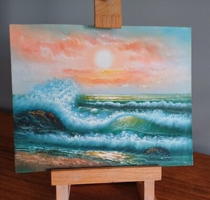 Seascape Oil Painting By Schubert 1970's oil on board Vintage