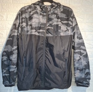 Pep&Co Men's Grey & Black Size Medium Camo Hooded Windbreaker Jacket Rain Coat