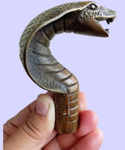 Collect Retro Old Bronze Handwork Cobra Statue Walking Stick Cane Head