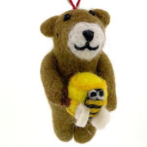 Bear Bee Ornament - Wool Bear with Beehive Christmas Ornament Holiday Decoration