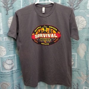SURVIVAL HORROR Outrun ~ Outgun ~ Outlive Survivor Zombie Parody T-Shirt Size XL