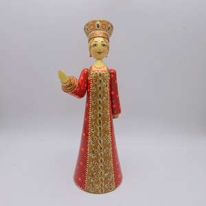 Hand Painted Russian Folk Art Style Figurine Red Gold Dress Reproduction Slavic
