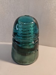 Vintage H. C. CO. Glass Insulator Green Colored Telephone Beehive H on Top #9
