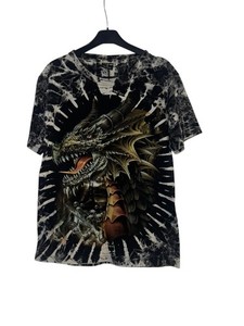 Dragon T-Shirt Gothic Fantasy Graphic Tie-Dye Tee Front & Back Print Size M