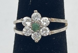 Avon Sterling Silver & Emerald Flower Cocktail Ring CZ Accents Sz 5 Vintage 1996