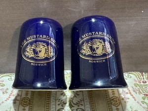 HOLKHAM POTTERY The Mustard Shop Norwich England Salt Pepper Shaker Blue SET