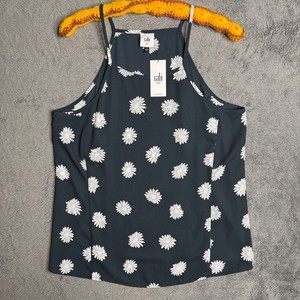 Cabi Petal Daisy Tank NWT Womens M Sleeveless Top Thin Blue Slate Gray