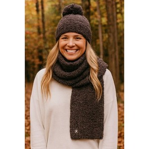 NWT Barefoot Dreams CozyChic Pom Pom Beanie Scarf Set HE Espresso Cocoa One Size