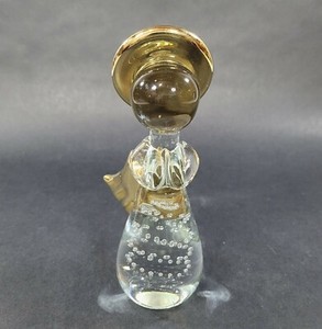 Blown Glass Angel Figurine Paperweight Controlled Bubble Gold Vintage 6.5 inches