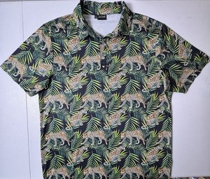 Bad Birdie Polo Shirt Men’s Large Performance Wildlife Leopard Palm Jungle Golf