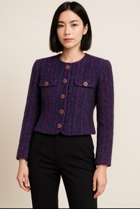 Vintage 80s Lucia Petites Purple Tweed Cropped Blazer Large Multicolored Bouclé