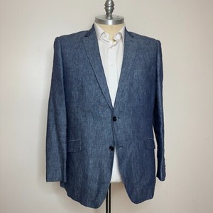 Jos. A. Bank Men's 44R Blue Linen Sport Coat Blazer 2-Button Solid Tailored Fit