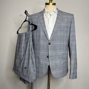 David Donahue Mens 48R 38W Blue Plaid Wool Suit Check