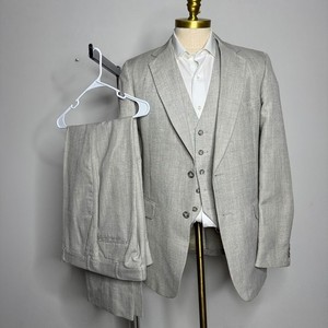 Vintage Custom Tailored Tweed 38L 32W Mens 3 Piece Suit Beige Stripe