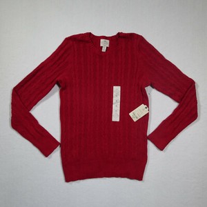 St. Johns Bay V-Neck Sweater Womens Cable Knit Long Sleeve Pullover SZ 0X Red