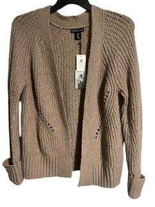 Sincerely Jules Womens Open Front Cardigan Sweater L Tan Knit Recycled Materials