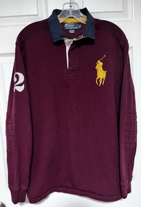 Vtg Ralph Lauren Polo Shirt Mens Medium Corduroy Maroon Big Pony Elbow Pads