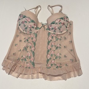 Sophie B. Pale Pink / Nude Sheer Embroidered Roses Babydoll Corset Top Small