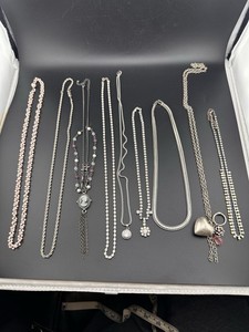 Lot Of 9 Silver Tone Necklace-please Read Description