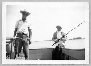 7N Photograph Vintage Snapshot Portrait Handsome Men Smile Fishing Boat