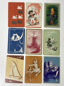 (LOT 21) 9 Individual Single Swap Trading Playing Cards ALL LINEN Art Artistic