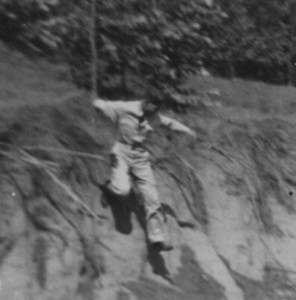 Man Climbing Dirt Slope Action Shot Candid Adventure Military 1940s