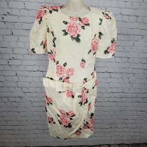 VTG Richard Warren Evening Ivory Silk Rose Bow Puff Sleeve Dress Retro Size 6