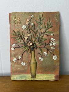 Chinese Small Ceramic Wall Decor Floral Good Fortune Happiness FU