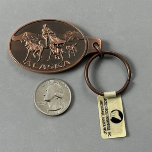 Arctic Circle Alaska Sled Dogs Mushing Copper Travel Souvenir Keychain Key Ring