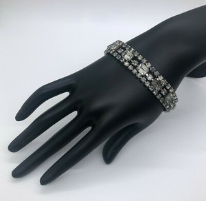 Vintage Signed Weiss Womens 3 Row Sparkly Rhinestones Statement Bracelet 7"