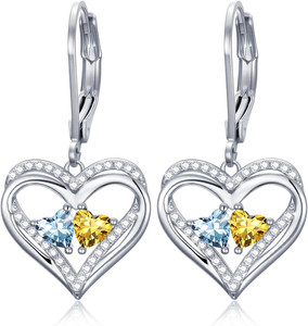Heart Leverback Earring Double Birthstone Dangle Earrings for Women Love Jewelry