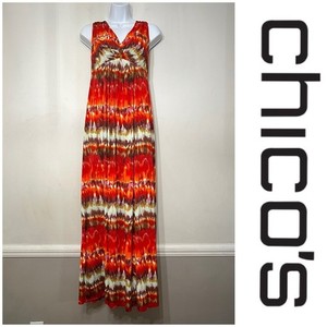 Chico's Dress Maxi Empire Multicolor Tie Dye Flame Southwest Art XL 16 18 (3)