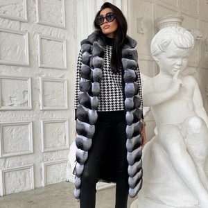 Dashing Women Chinchilla Fur Coat Real Rex Rabbit Fur Jacket Winter New Overcoat