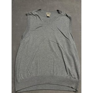 LL Bean Mens V Neck Sleeveless Sweater Vest L Reg Gray Cotton Cashmere Blend