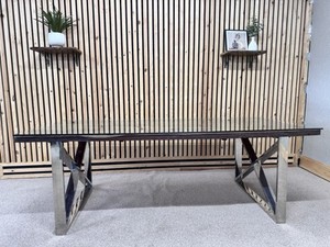 Furniture Village Chennai Dining Table, Reclaimed Wood & Glass Top (RRP £1849)