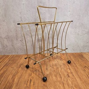 Vintage Atomic Style Magazine Rack - Mid Century Modern Design - Gold / Black