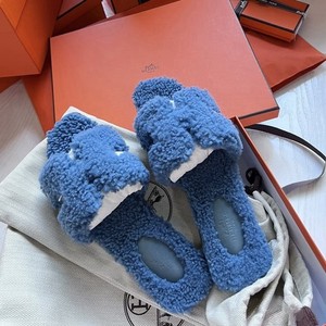 NIB Hermes Oran Shearling Fur Teddy H Sandal Flat Chypre Oasis Slide Mule 38