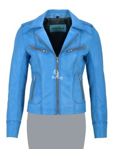 Ladies Fashion Leather Jacket Electric Blue CLASSIC BIKER STYLE REAL NAPA 9334