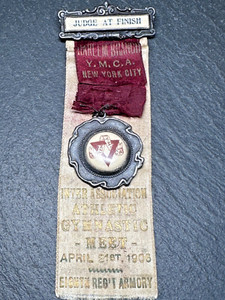 1906 HARLEM NEW YORK CITY JUDGES BADGE YMCA GYMNASTIC MEET - K665