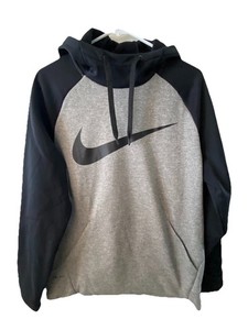 Nike Mens Medium Gray Black Fleece Lined Hoodie Sweatshirt Pullover Swoosh