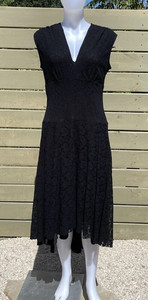 Vintage 90s Black Lace Midi V Neck Dress High Low Floral Tank Goth Grunge Large