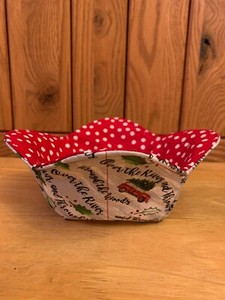 Handmade Quilted Over the River Through the Woods Reversible Microwave Bowl Cozy