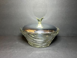 Vintage MCM Kromex Ribbed Glass Chip & Dip Serving Bowl w/ Silverplated Lid