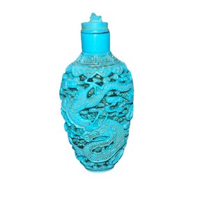 Vintage Carved Resin Dragon Motif Chinese Style Snuff Bottle With Frog Stopper