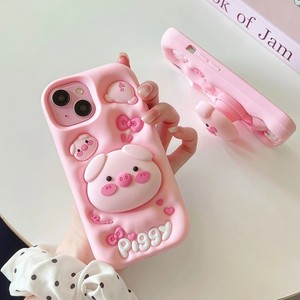 For Various Phone 3D Cartoon Holder Big Head Pig Silicone Anti-Fall Phone Case