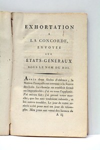 LIVRE ANCIEN RARE CERUTTI DISCOURS EXHORTATION À CONCORDE ÉTATS-GÉNÉRAUX 1789