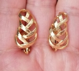 Vintage Open Work Brush Gold Spun Weave Clip On Earrings Avon 80s