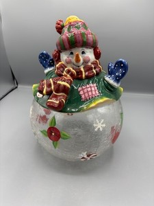 Ceramic & Crackle glass snowman cookie jar