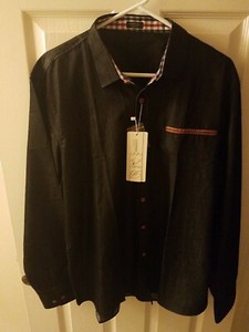COOFANDY Men L Shirt Button Down Shirt Long-Sleeve Black Denim Accent Cuff